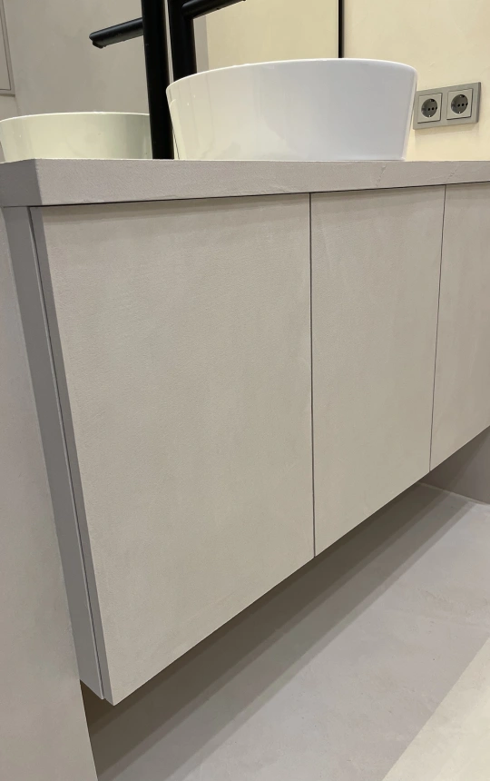 Микроцемент (микробетон) можно наносить почти на все виды оснований: цементный раствор, самовыравнивающиеся растворы, кафельная плитка, гипсокартон или гипс. Также на вертикальные и горизонтальные поверхности внутри и снаружи помещений. При использовании определенных грунтов, образуется отличная адгезия ко всем основаниям.