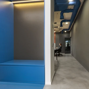Микроцемент – это не просто отделка, а инструмент, который помогает зонировать пространство, подчеркнуть его назначение и создать гармоничную рабочую атмосферу.