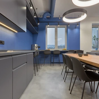 Кухонные столешницы и фартуки из микроцемента на кухне – практичное и гигиеничное решение для офисных кухонь.